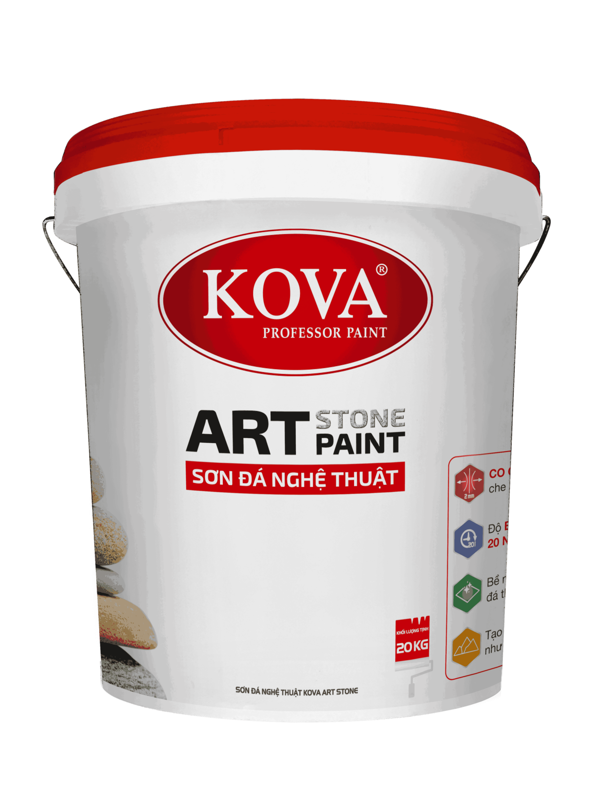 Sơn Đá Nghệ Thuật- Art Stone được tổng hợp từ các vật liệu khoáng và các Thickeners làm đặc Polyurethane, hình thành các liên kết chặt chẽ với dẫn xuất Silicon. Sơn đá nghệ thuật KOVA vô cùng đa dạng về chủng loại, sử dụng cho cả trong nhà và ngoài trời.