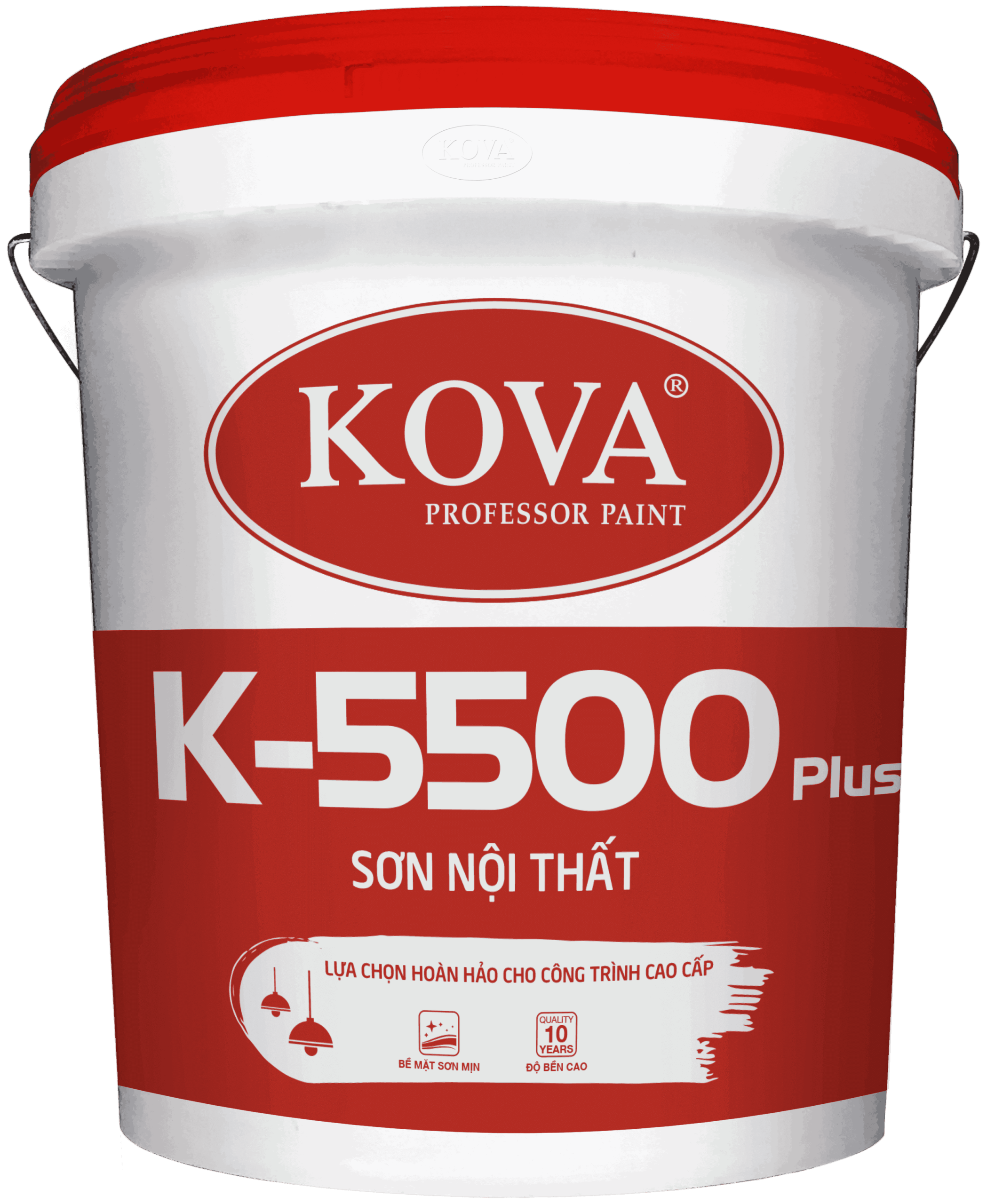 Sơn nội thất cao cấp KOVA K-5500 Plus là sơn nước gốc Acrylic hệ nước với công thức mới kết hợp các hạt phân tử sơn liên kết chặt chẽ với nhau tạo thành lớp bảo vệ chắc chắn trước các tác động của bụi và vết bẩn. Ứng dụng “hiệu ứng cơ chế giọt” giúp bụi và vết bẩn được loại bỏ dễ dàng khi lau chùi. Sản phẩm chứa hàm lượng VOC cực thấp, gần như không mùi, đáp ứng nhu cầu bảo vệ sức khoẻ và môi trường, giúp nâng cao chất lượng cuộc sống, kiến tạo không gian trong lành, phù hợp với những khu vực dành cho trẻ nhỏ và người lớn tuổi.