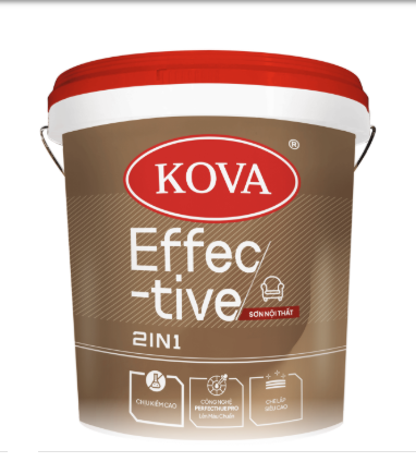 Sơn nội thất KOVA Effective 2in1 kết hợp sơn lót và sơn phủ trong một sản phẩm, giúp tối ưu thời gian thi công nhưng vẫn đảm bảo khả năng kháng kiềm, độ bám dính cao chỉ với hai lần lăn sơn.