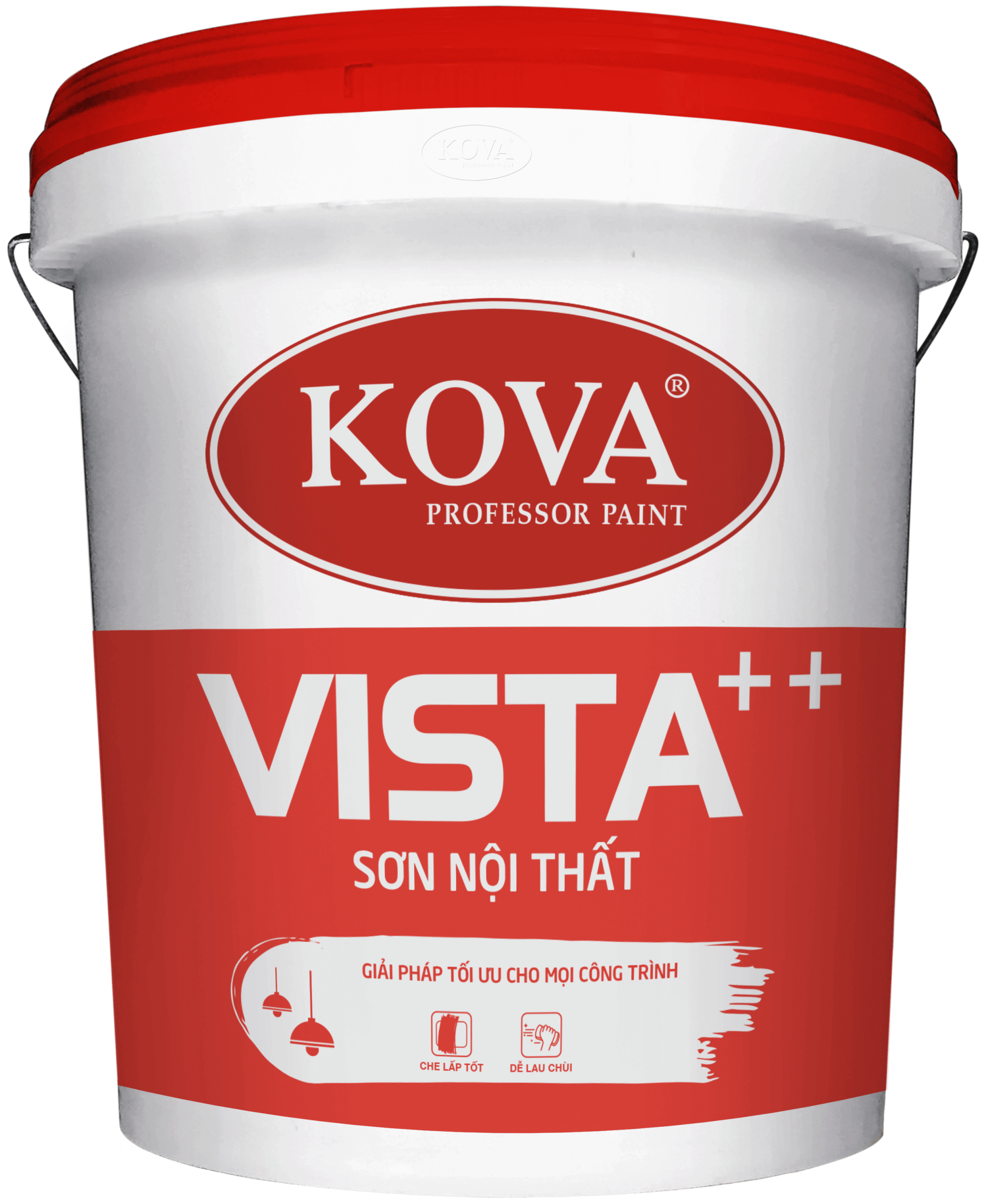 Sơn nội thất KOVA Vista ++ là loại sơn nước gốc Acrylic hệ nước chất lượng tốt với nhiều đặc tính vượt trội như khả năng che phủ cao, bề mặt sơn bền đẹp, láng mịn, chịu được chùi rửa tối đa giúp việc vệ sinh tường nhà dễ dàng hơn. Sơn khô nhanh, dễ thi công giúp tiết kiệm được thời gian, nhân công và chi phí khi sử dụng